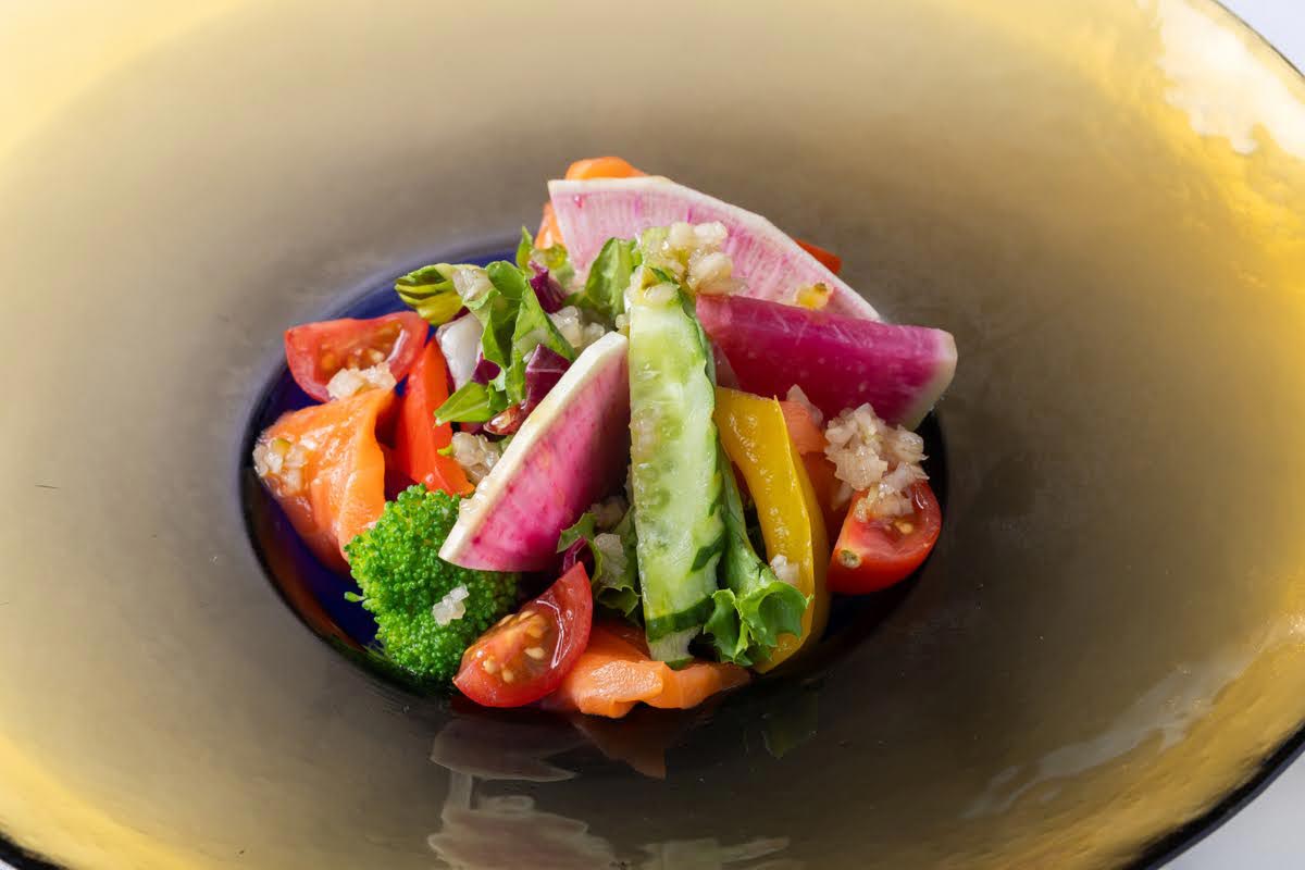長野県産の食材を使った、季節の食材とのコラボレーション。フレンチであり和食でもあるながのテロワールを、お料理に合わせた信州ワインとともに。