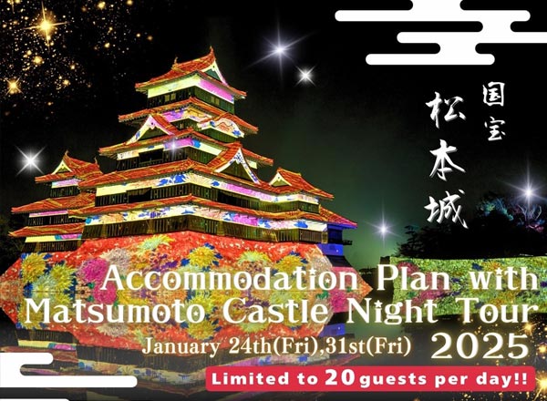 Matsumoto Hotel Kagetsu is located just a 5-minute walk from Matsumoto Castle, a national treasure. Nakamachi Street and Nawate Street are lined with stucco warehouses, Reminiscent of the traditional castle town aesthetic, It is also a town with natural spring water sources, with the cuisine and public baths using local water that is certified as among the "Best 100 Water Sources of Heisei."